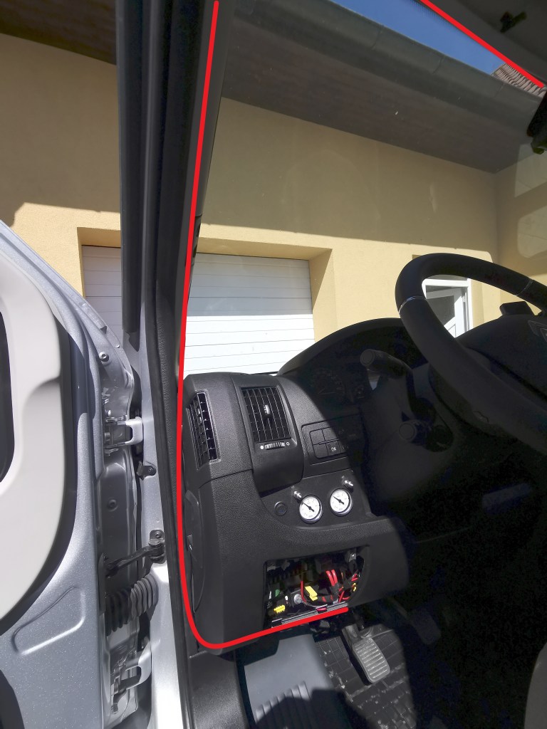 Druhou nevýhodou kamery v kabině Ducato-Jumper-Boxer je, že je příliš vysoko nad vozovkou a jakmile se zašpiní čelní sklo, je záznam třeba pro videa z cest skoro nepoužitelný. A díky tomu, jak je vysoko, se sklo obtížněji čistí. Ale to není špatná vlastnost kamery, to je dáno vozem.