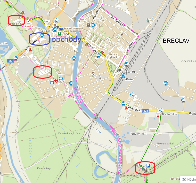 V samotné Břeclavi je několik dalších vhodných míst – ty jsem tedy viděl jen při objížďce na kole, ale dalo by se tam stát: