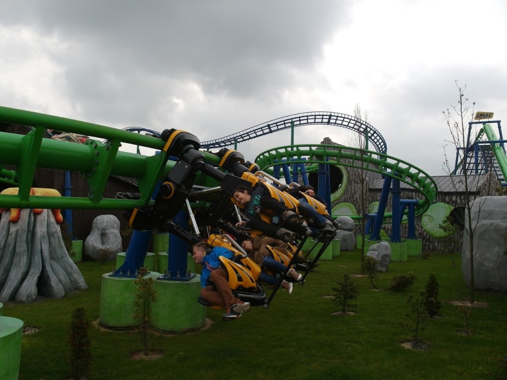 - Dragon – nová dráha, tzv. zavěšenka (vozík nejede po koleji pod vámi, ale sedíte v sedačce, která je připevněna k vozíku jedoucímu nad vámi) Tahle dráha je na svezení velmi příjemná. Další podobná je myslím v Nizozemí. Jeli jsme ji několikrát dokola a skutečně to stojí za to. Od pádu do dračí hlavy až po poslední propad před dojezdem