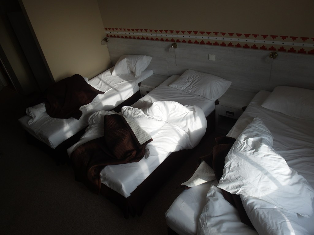 Hotel měl velmi dobré recenze a hodnocení, tak jsme byli trochu zklamání tím, že to byl spíše obyčejnější hotel. Ale obsluha byla příjemná, vybavení dobré a cena mírně přes 200 zlotých přijatelná. Navíc v ceně byla snídaně a návštěva parku – ta sama o sobě stojí 40 zlotých za osobu a jen vstupné by tak pro nás tři stálo 120 zlotých. Po ubytování jsme ještě zvládli několikahodinovou návštěvu akvaparku – má dva tobogány, plavecký bazén, vířivky – prostě vše, co má správný akvapark mít.