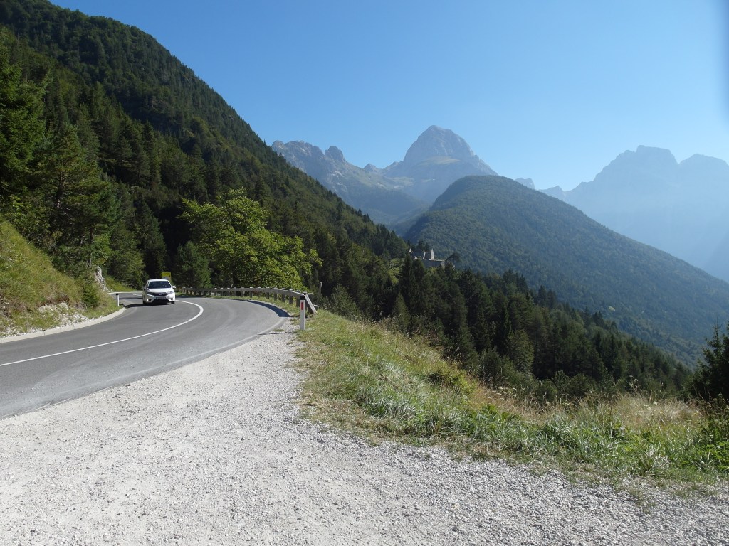Po přejezdu hranice do Slovinska lze odbočit na horskou placenou silnici na Mangart. Pro obytné vozy ale není – maximální výška vozidla je něco málo přes 2.2 m, a to kvůli několika tunelům na trase. Jo možné odstavit vozidlo na malém parkovišti a pokračovat nahoru pěšky (cca 4 hodiny, takže asi nereálné) nebo na kole – to mnozí dělají, s elektrokolem to nemusí být špatné.