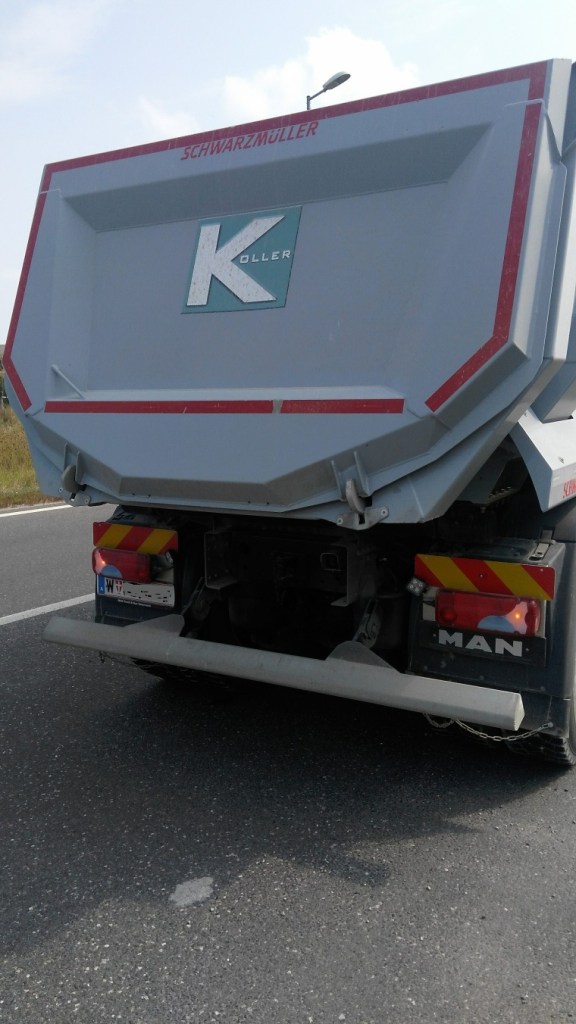 Stalo se u Vídně, na S2 – to je ten přivaděč, co z A5 svede provoz do Vídně, kousek před městem. Cosi odlítlo od náklaďáku před námi – rána pěkně hlasitá a sklo ozdobil pěkný „pavouk“. Řidiče jsme předjeli, ukázali jsme problém a na nejbližším výjezdu jsme sjeli a na malém plácku u silnice zastavili.