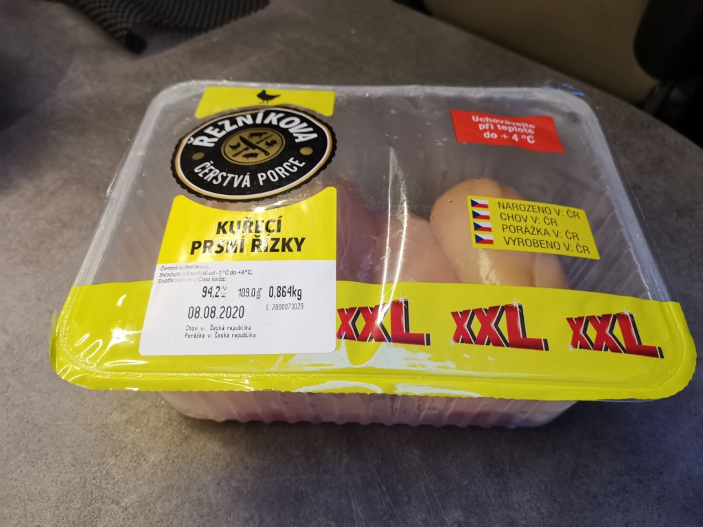 Vytáhneme maso z lednice a dáme jej na vrch ploténky.