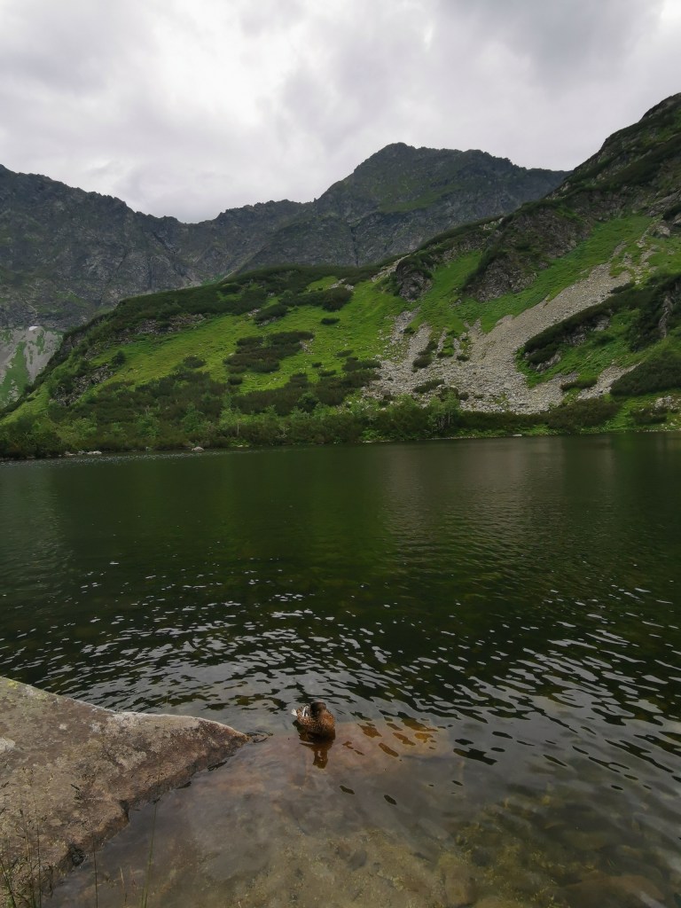 V tom spodním, tedy vlastně prvním, se někdo pokoušel i koupat. Ale jen krátce, voda byla studená. To už se také valili ze spodu docela davy lidí, my sestupovali směrem k Ťatliakovej chate. Tam jsem si opět dopřáli relax u jezera. V chatě se nabízelo i občerstvení, ale jídelní lístek provedený ve stylu vietnamského bistra na nádraží teda k ochutnání nelákal – ani svým vzhledem, ani nabídkou.