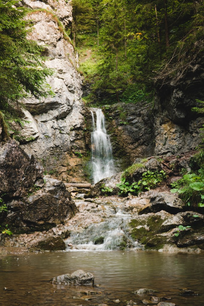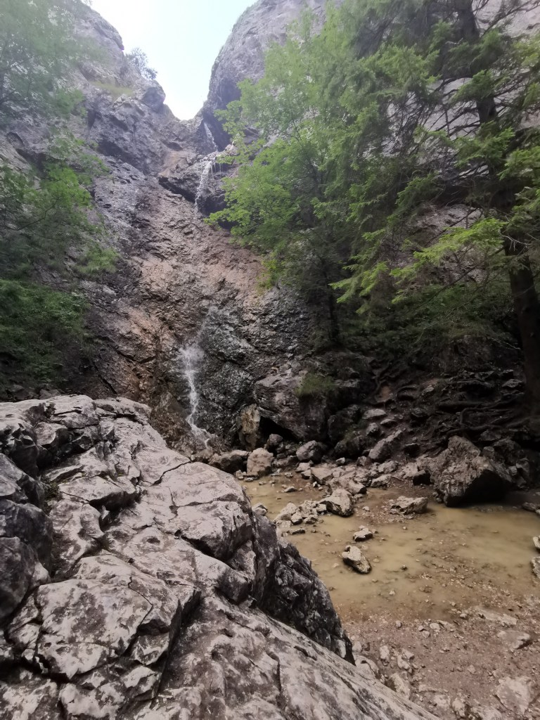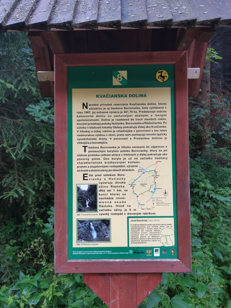 Většina návštěvníků asi začíná svůj výlet v Kvačanech, takže všechno co následně popíši, bude z jejich pohledu od konce. Ale my do Kvačianskej doliny přišli ‚zhora‘ a tak první velkou atrakcí byl vodopád a rokle.