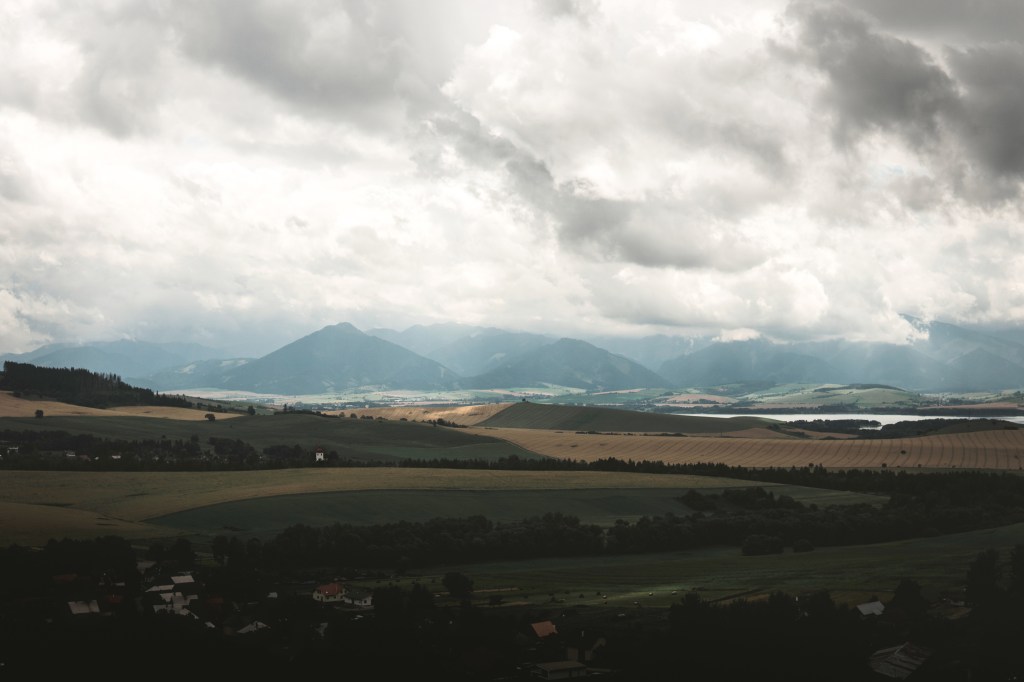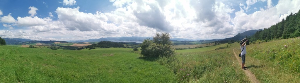 My ale dole, hned po ceduli označující začátek obce Kvačany, odbočili na žlutou, směr Prosiek a byli sami. Stezka se v první části poměrně strmě zdvihne, ale pak prakticky sleduje vrstevnici na rozhraní pole a lesa. A nabízí výhledy na Roháče a na Liptovskou Maru. Jen je na jih, takže slunce, které už definitivně zvítězilo nad ranní zataženou oblohou, do nás pěkně rvalo. Přechod trvá něco přes hodinu, nám to se zastávkami na focení i jídlo vzalo téměř dvě. Stezka končí sestupem ke vstupu do Prosiecké kotliny.