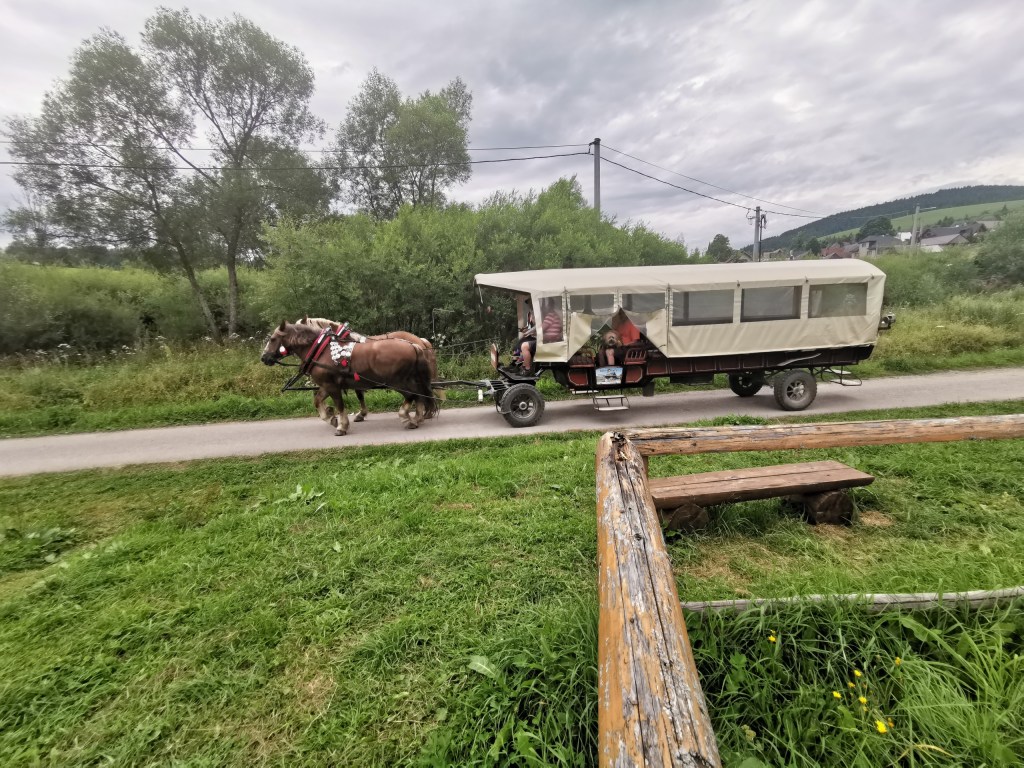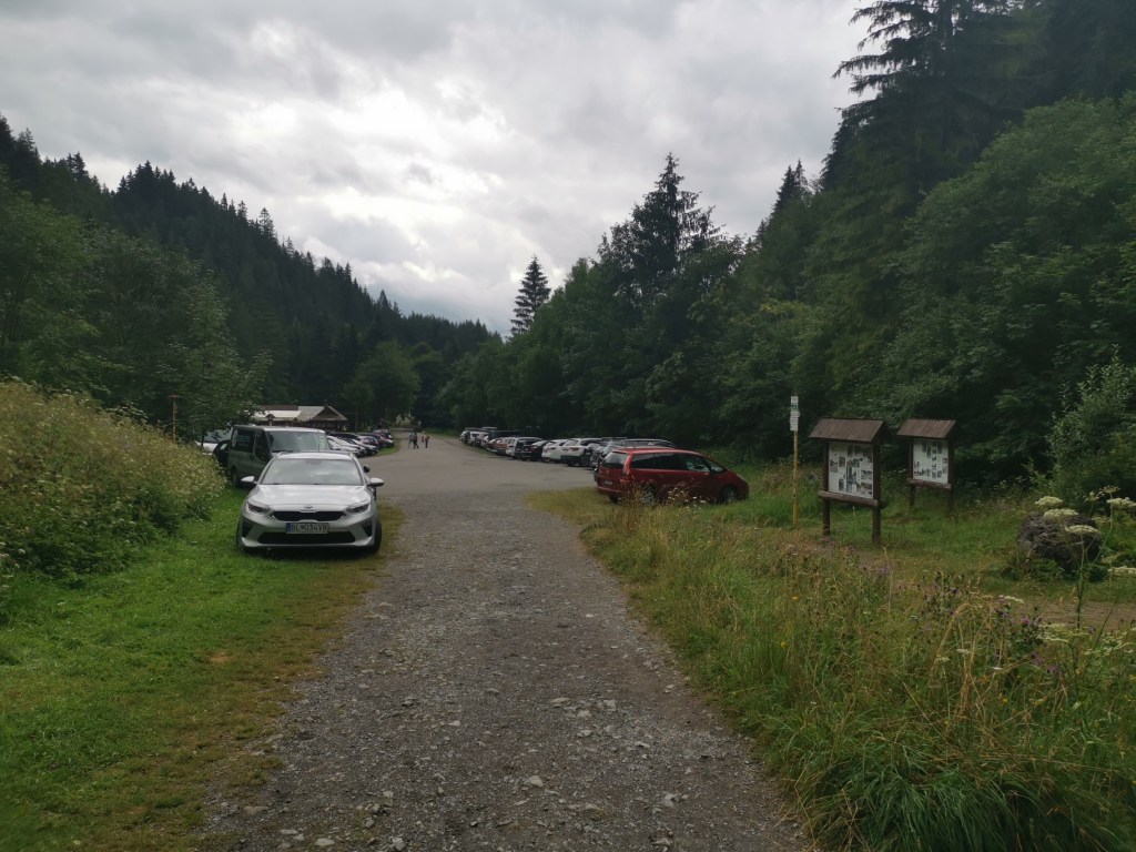 Samotné parkoviště je prostorné, při příjezdu bylo tak z poloviny obsazené, ale večer jsme tam zbyli sami. Není zde ani nijak rušné, přeci jen je to na okraji obce, takže sem tam tam turisté, občas přejede místní atrakce – doprava pro turisty od ústí Kvačinskej doliny do místního občerstvení.