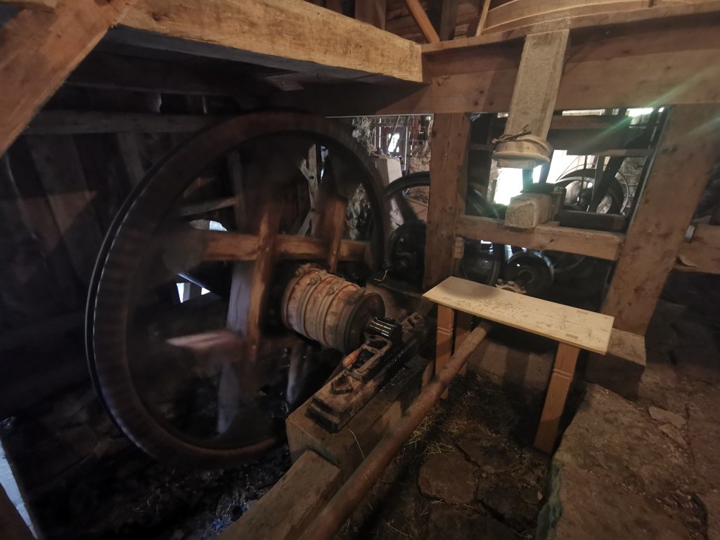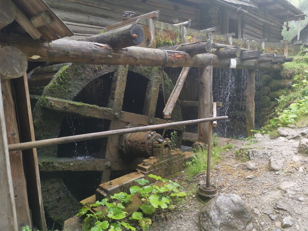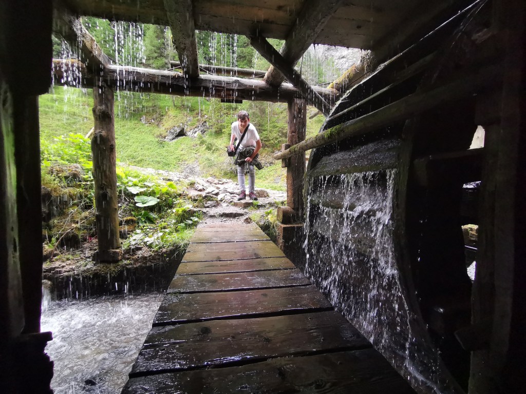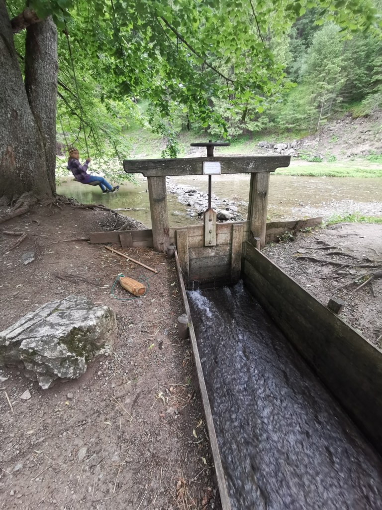 Následovaly mlýny v Oblazech – je to zážitek vidět mlýn v provozu a mít možnost projít vodní tříští kolem mlýnského kola. Vše je popsané na informačních cedulích a do celého mlýnského objektu je vstup volný. Před mlýny se pak pasou kozy, přecházejí kočky a zobou slepice a tím vším protéká říčka Kvačianka.