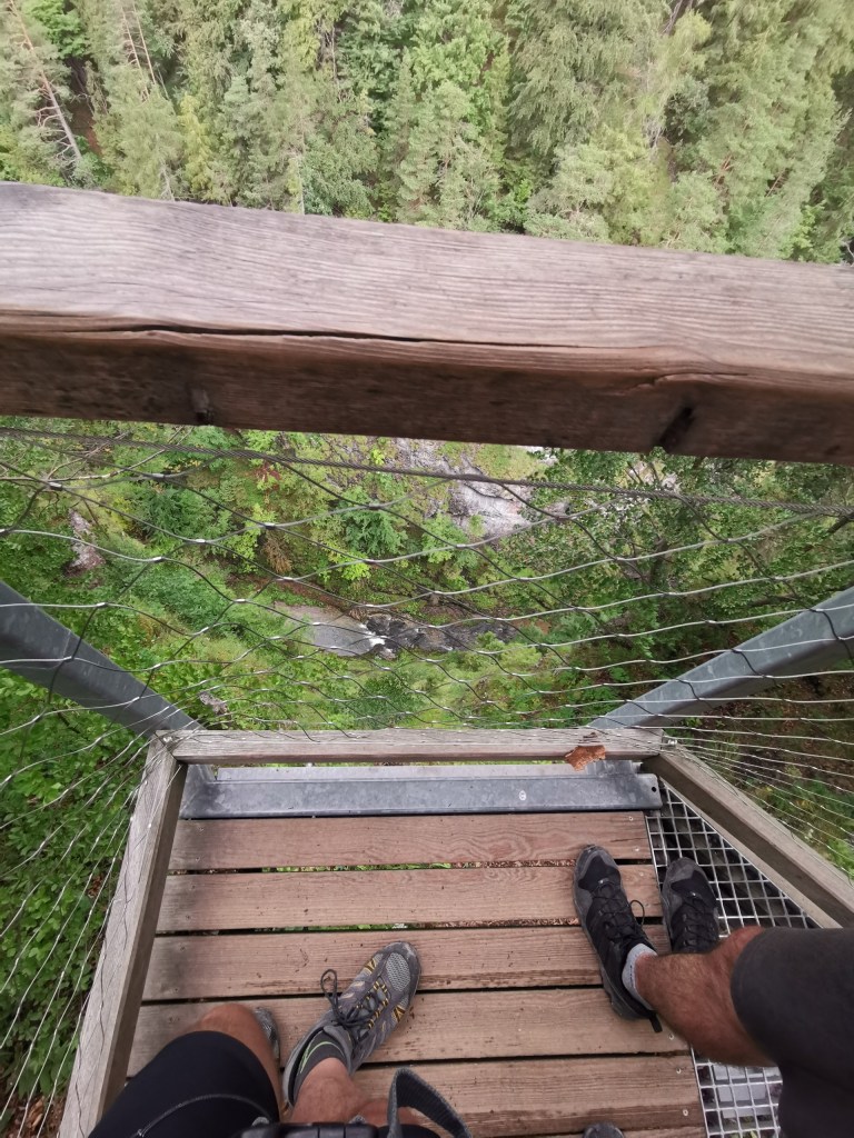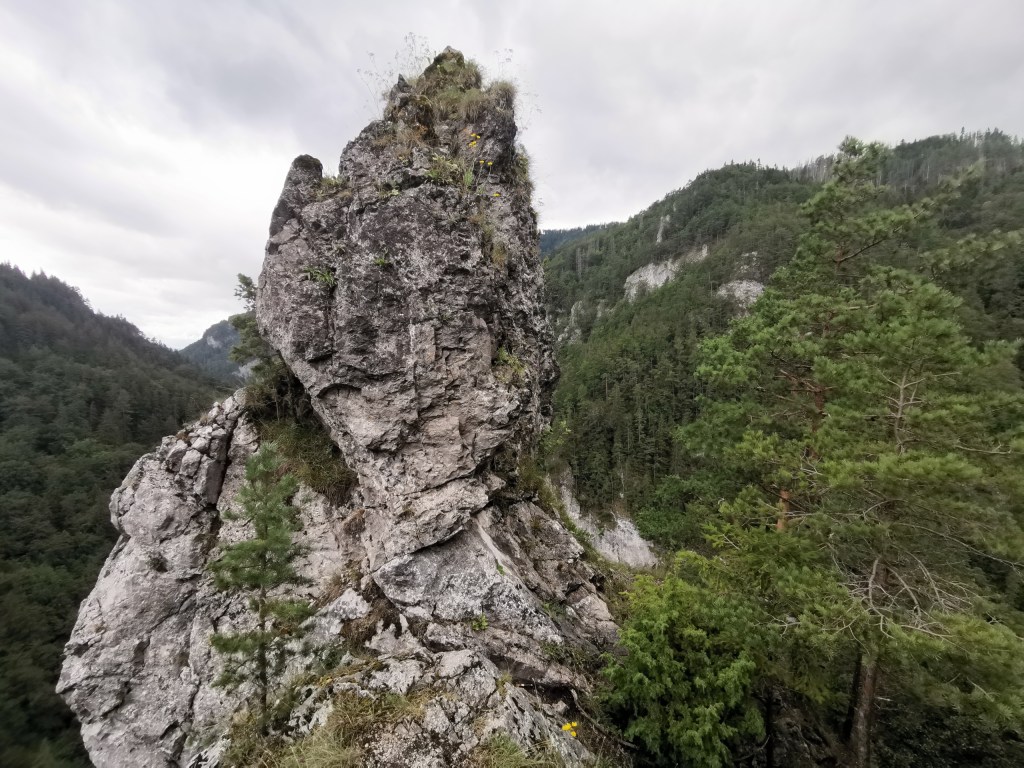Po cestě dolů nás čekalo několik vyhlídek – jsou zde dvě umělé vyhlídkové plošiny, které nabízejí výhled do soutěsky v hloubce pod námi a pak několik přírodních. Atrakcí je i tzv Jánošíkova hlava.