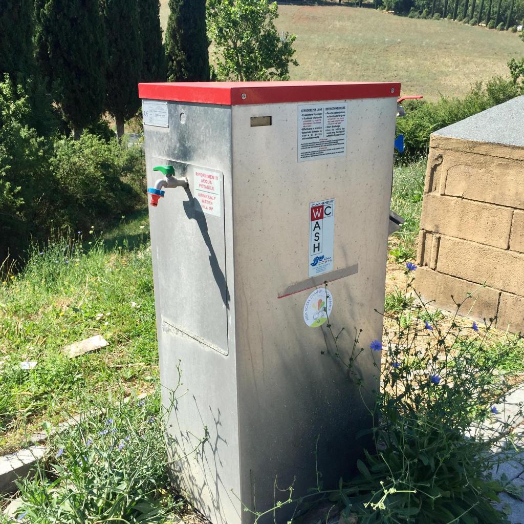- za €4 jednohodinový pobyt, během kterého můžete udělat servis (vylití WC, šedé vody, doplnění vody)