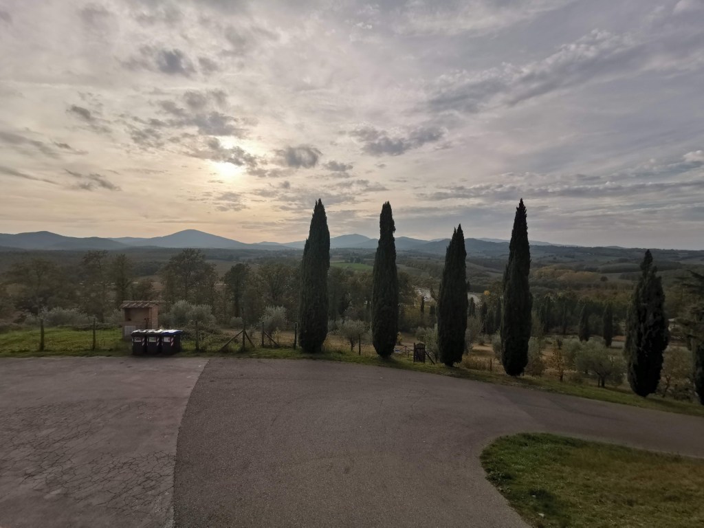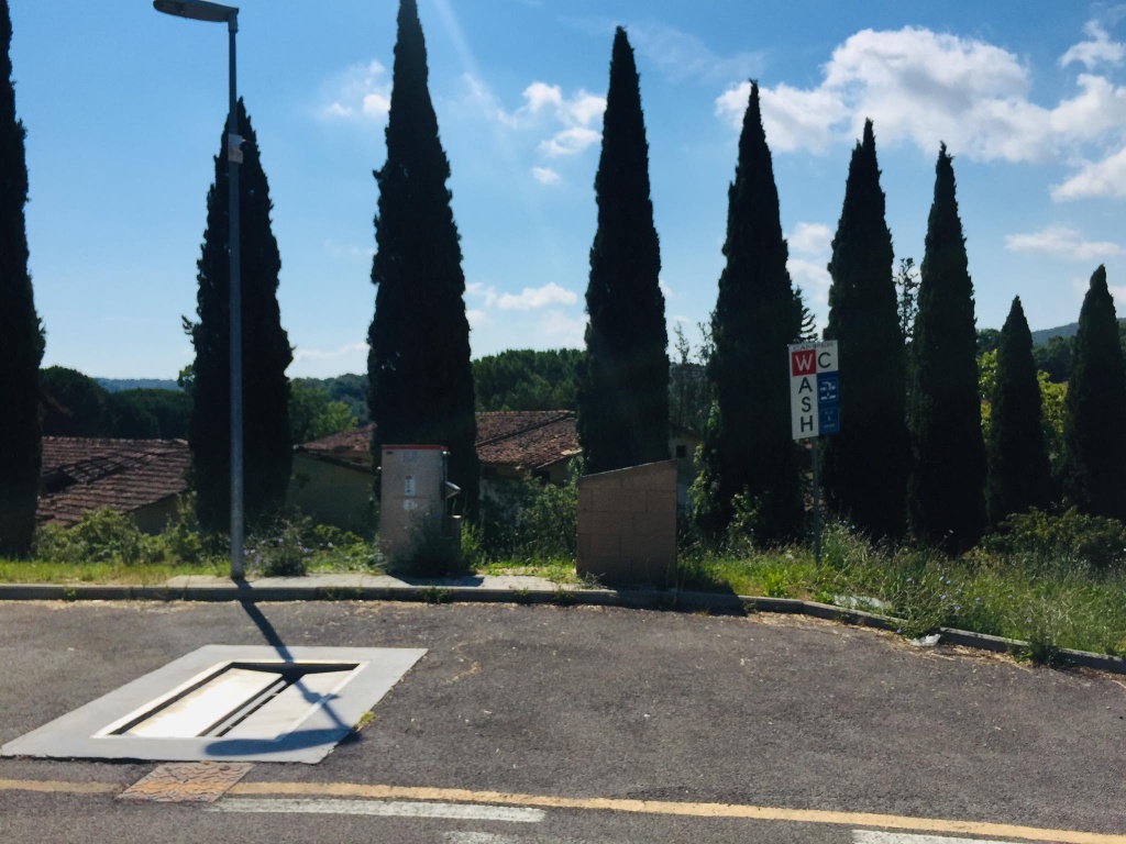 Do Toskánska jsme přijeli již pozdě večer a tak jsme nejprve vyhledali místo k nocování. Jako nejlepší se mi jevilo místo u hřbitova v San Casciano ve Val di Pesa nalezené přes Park4Night. Výhodou je blízkost bezplatné dálnice RA3 a přitom je tohle místo velmi klidné.