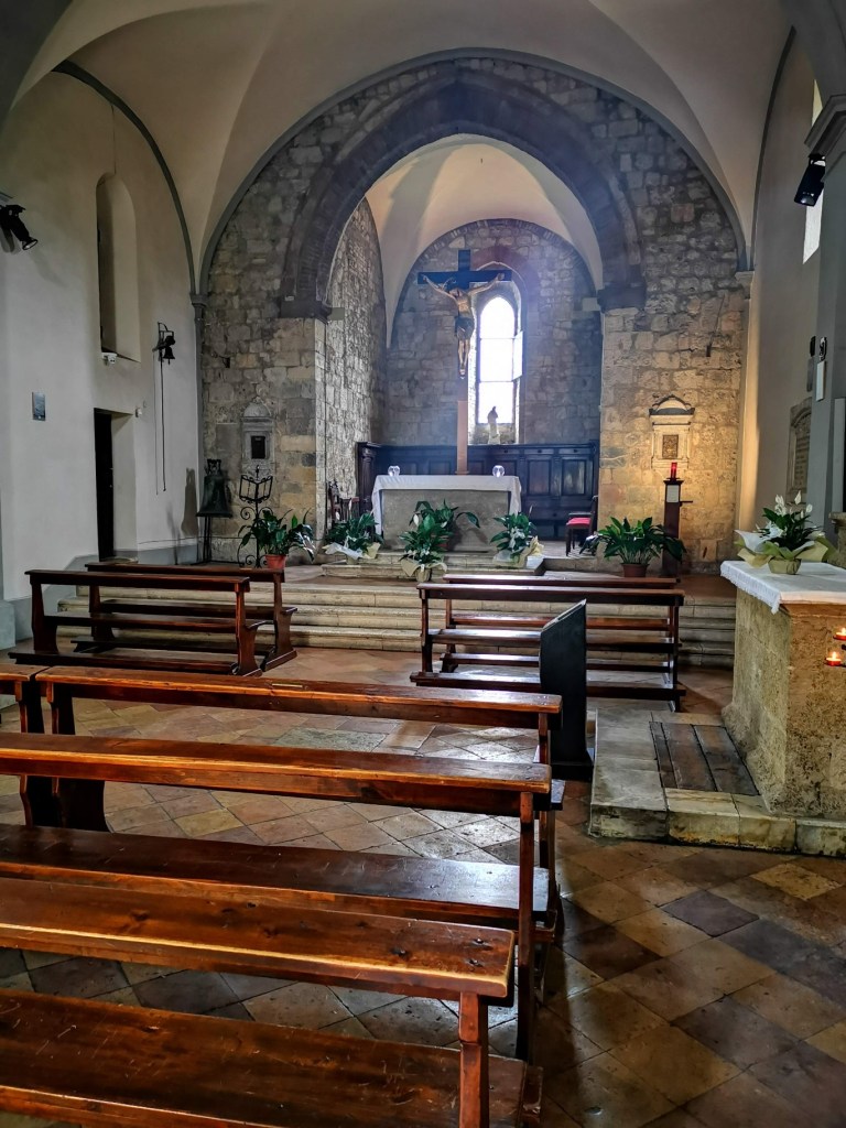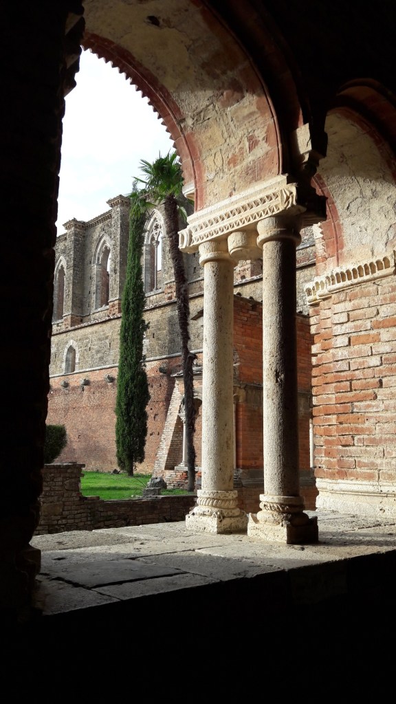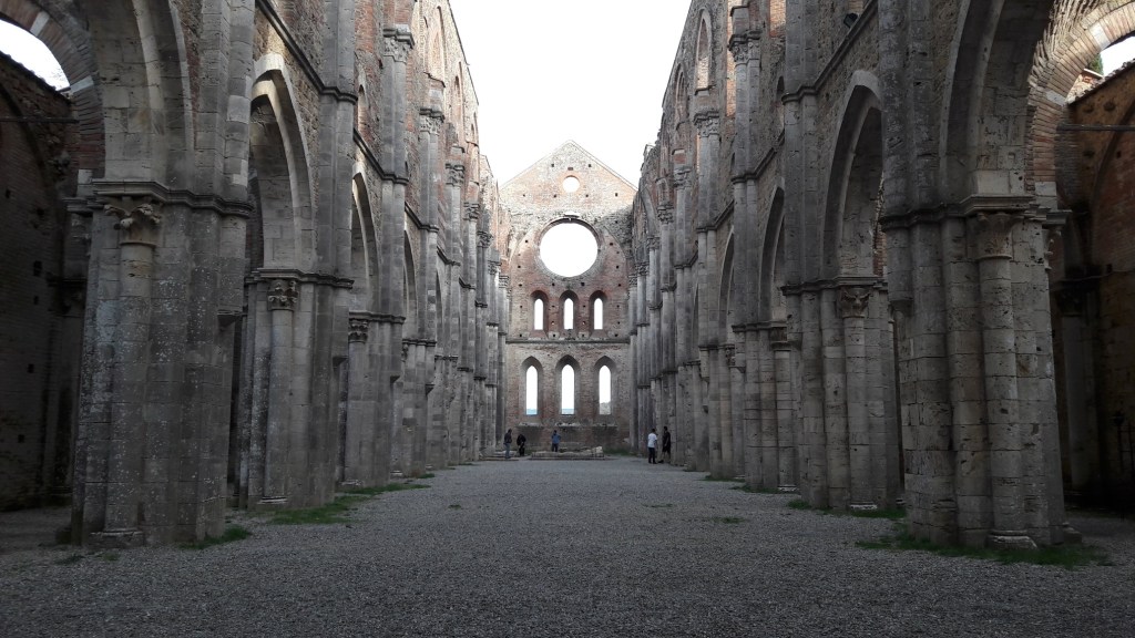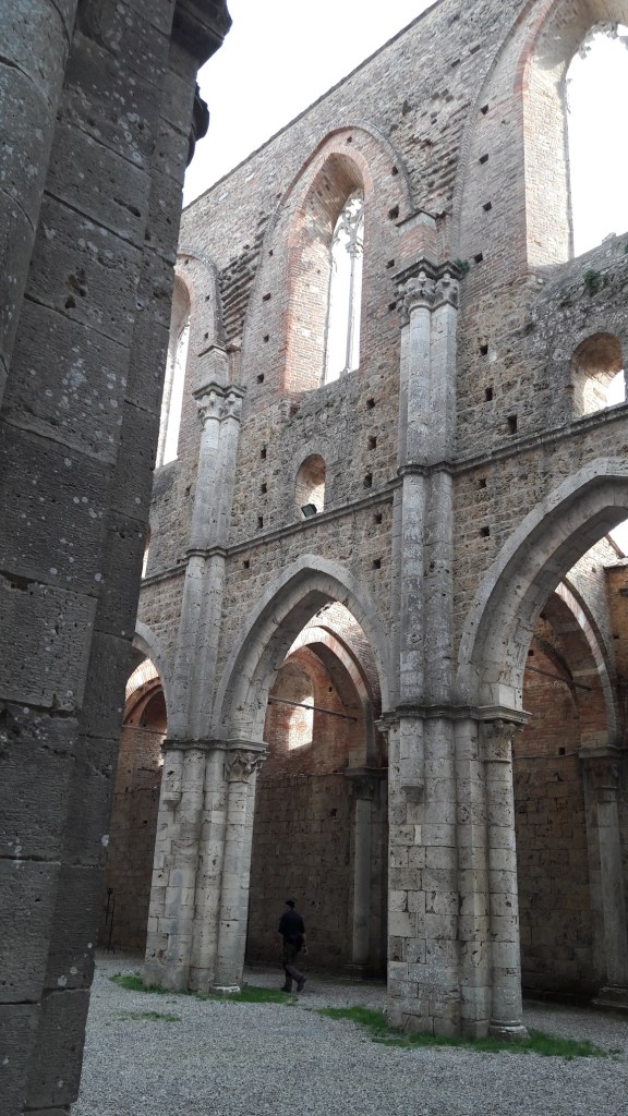 K opatství San Galgano jsme si zajeli tak nějak mimo naší cestu, spíše ze zvědavosti. Nepopírám,že tohle místo má atmosféru, ale myslím, že v naší zemi podobná místa, třeba Dolní Kounice máme také. Vstupné €4 dospělý a €3 dítě a prohlížet si můžete do sytosti. Jsou zde informační cedule, které vás s historií tohoto místa seznámí. A poté jsme si vyšlápli na mírný vršek ke kapli s nezvykle kruhovou vnitřní výzdobou kopule a mečem v kameni, zanechaným zde rytířem, co se stal poustevníkem a do kamene zabodl svůj meč. Navíc je odtud pěkná vyhlídka do okolí.