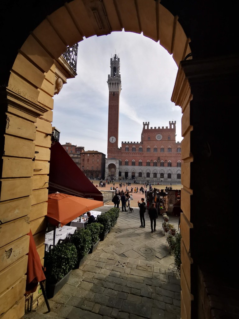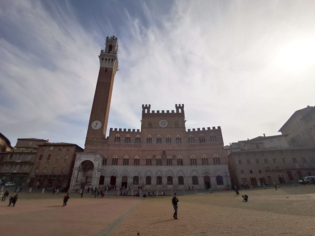 Hlavní náměstí, Piazza del Campo, je pro Sienu typické, zde se jezdí slavné závody koní Palio. Svažitému náměstí pak dominuje věž Torre del Mangia, ze které je výhled na město.
