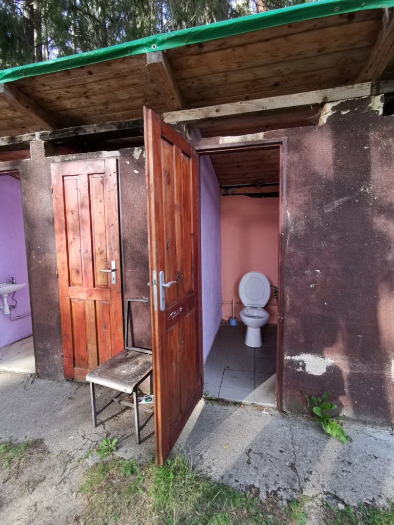 Vybavení je spartánské, ale k dispozici je mimo WC, přípojky elektřiny i půjčovna knih a program kina.