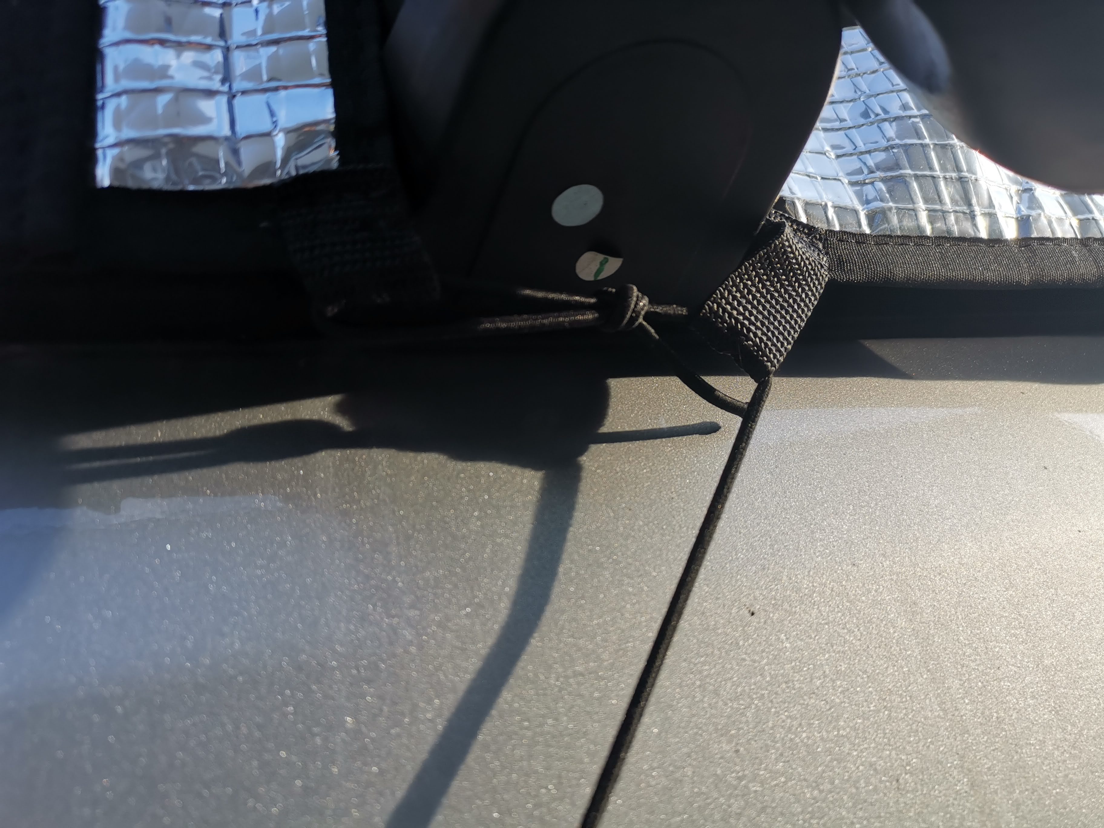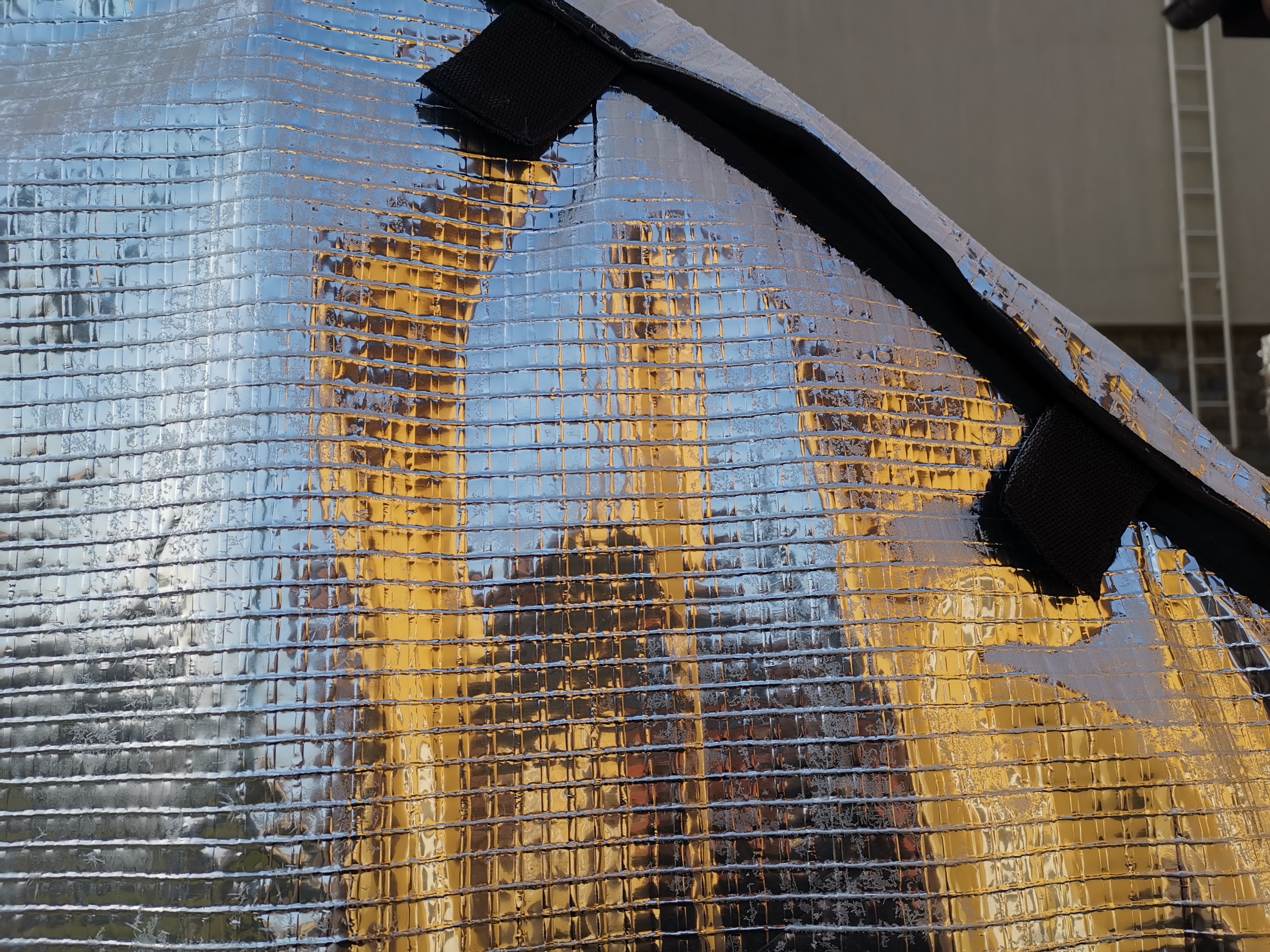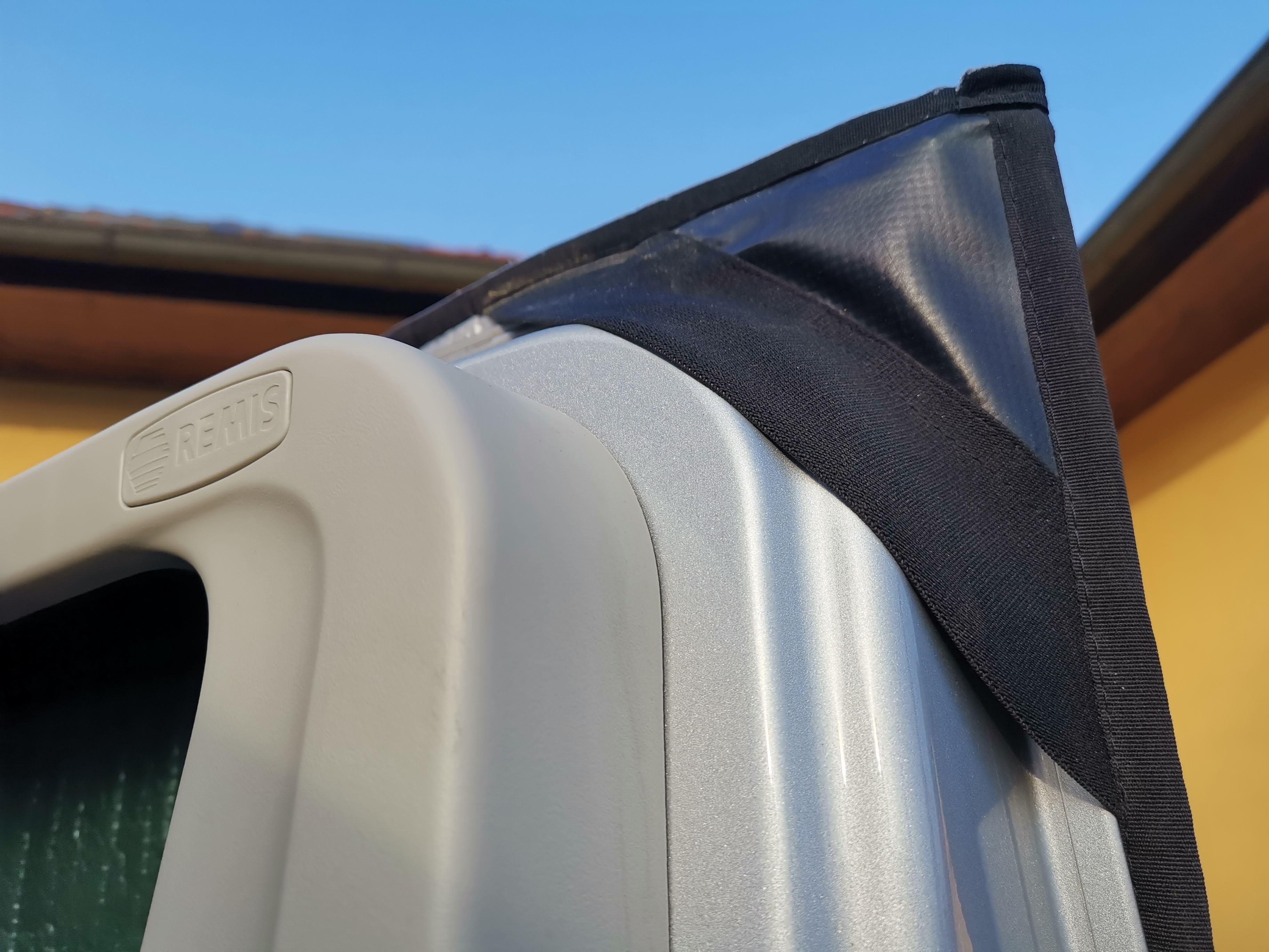 Izolaci oken tvoří pěna tl. 8mm s POE podšívkou, vzduchová komora, zvenku zrcadlová folie. Dveře spolujezdce jde otevřít i bez sundání. Po obvodu dveří jsou našité magnety (obvykle 13 ks), které se pevně přicvaknou na plech karoserie, aby pod izolaci netáhlo, sada gum a plastových háčku pro fixaci, včetně uchycení na hrany dveří dole.