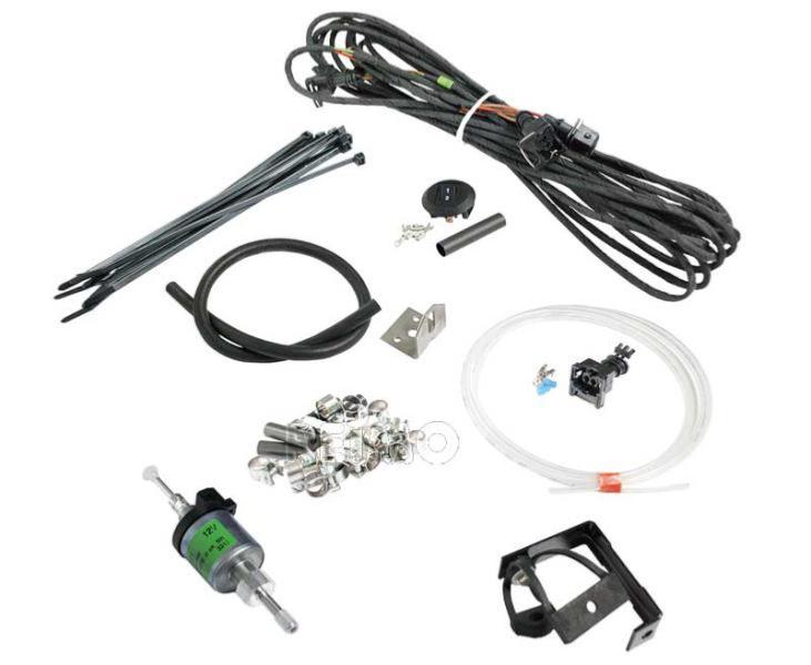 Hlavní částí setu je palivové čerpadlo. To je i nejdražší položka, zbytek je „bižuterie“ – držák čerpadla, rozbočky, palivové vedení a z elektrické části přepínač.
