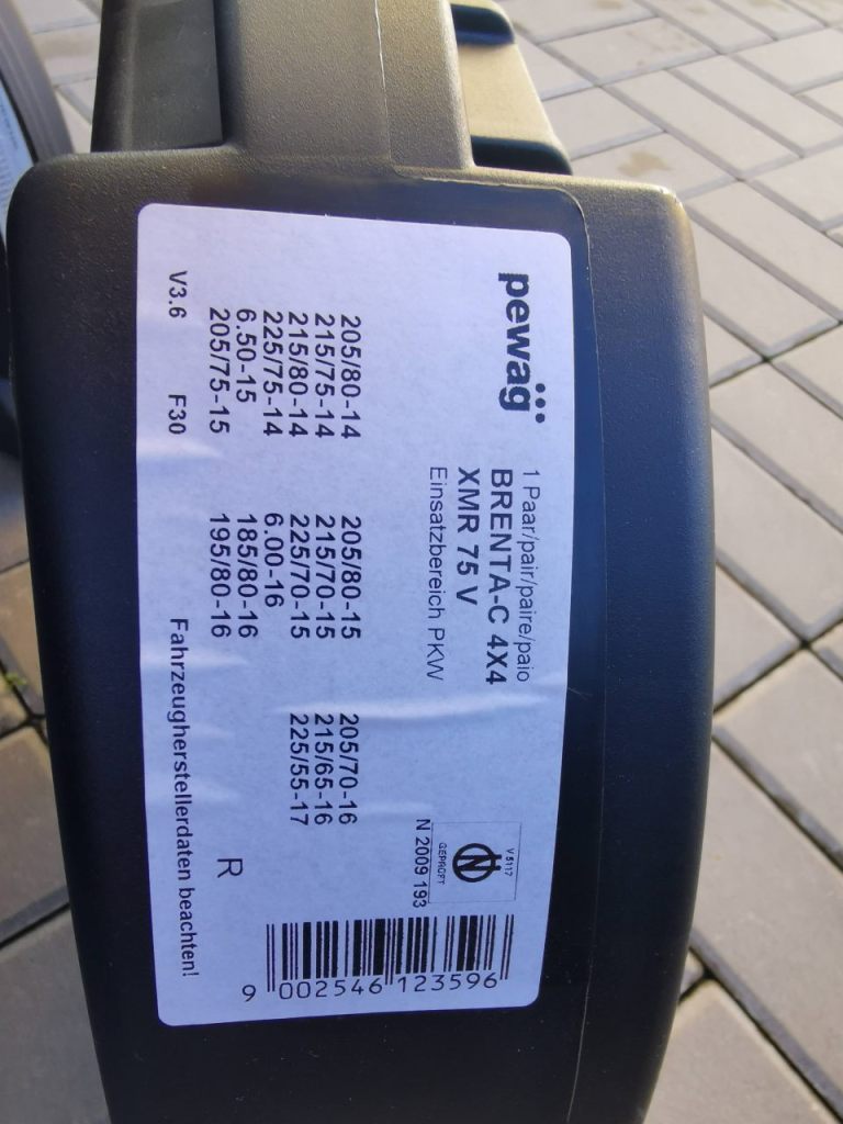Pro vestavby mám sněhové řetězy Brenta-c 4×4 XMR 75 V. Kdysi stály něco málo přes 4000 korun, nyní jdou sehnat v ceně více než 5.500 Kč. Ve srovnání s řetězy pro běžné auto jsou citelně větší a těžší, je nutné počítat s tím, že váží 8 kg.