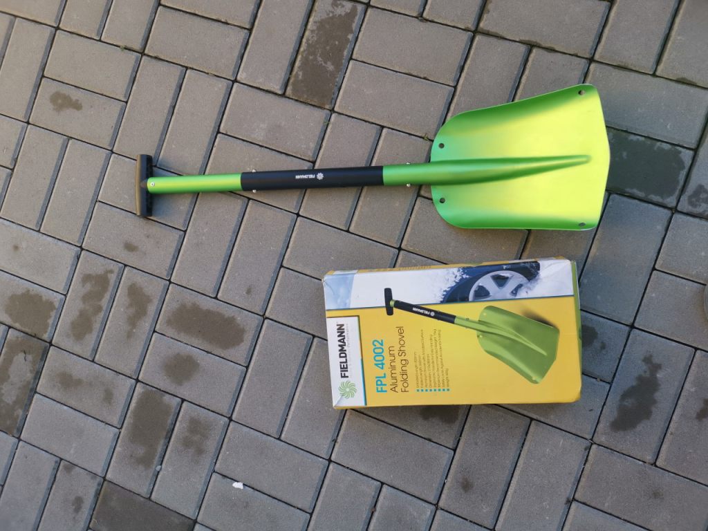 Skládací kovová lopata – je dobré ji mít pro jistotu. Nikdy nevíte, kolik sněhu připadne před váš vůz a nebo kdy skončíte v závěji. Což se stalo jednou i mně, protijedoucímu vozu, který měl problémy, jsem uhnul do boku silnice a zabořil se do sněhu, lopata, jakkoli malá, mi pomohla se z toho dostat. Podobně občas na parkovišti, kdy pluh nechá před vozem menší sněhovou hradbu.