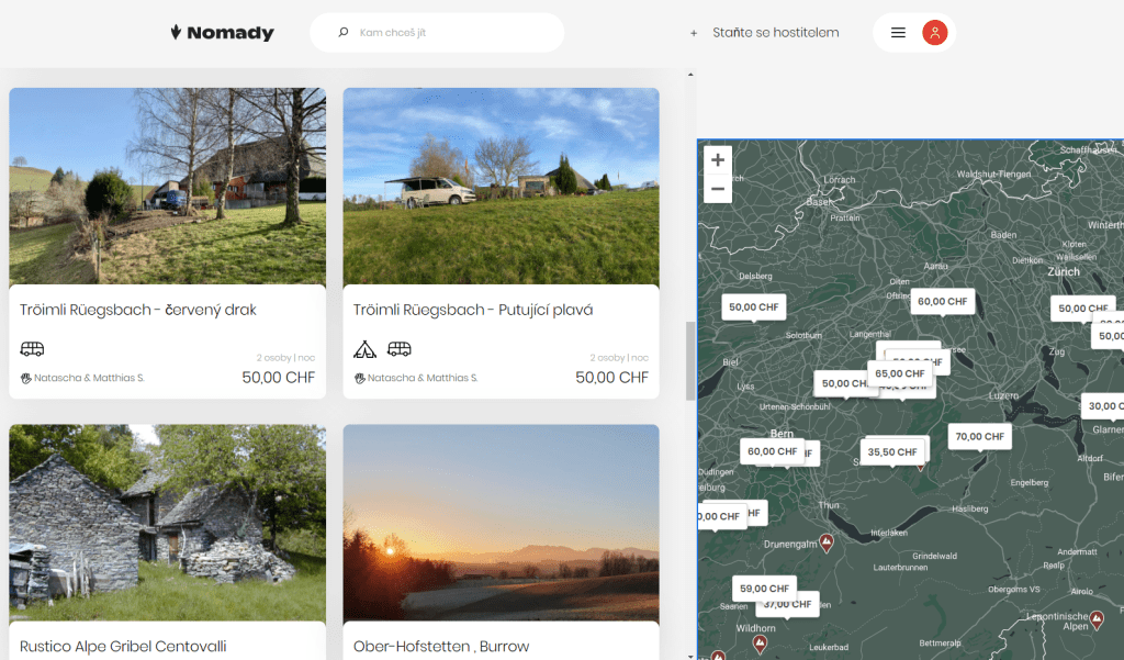 Švýcarský startup který funguje prakticky stejně jako bezkempu. Lidé zde nabízí své pozemky i chaty, zájemci si je pak mohou pomocí mapy a stručných popisů najít a zarezervovat si vyhlédnuté místo na zvolené datum. Platba probíhá přes platební kartu. Vlastní komunikace s hostitelem je možná až po rezervaci. Většina míst je také vybavena záchodem. Popis míst je vybaven přehlednými piktogramy a přehledné je i vyhledávání.