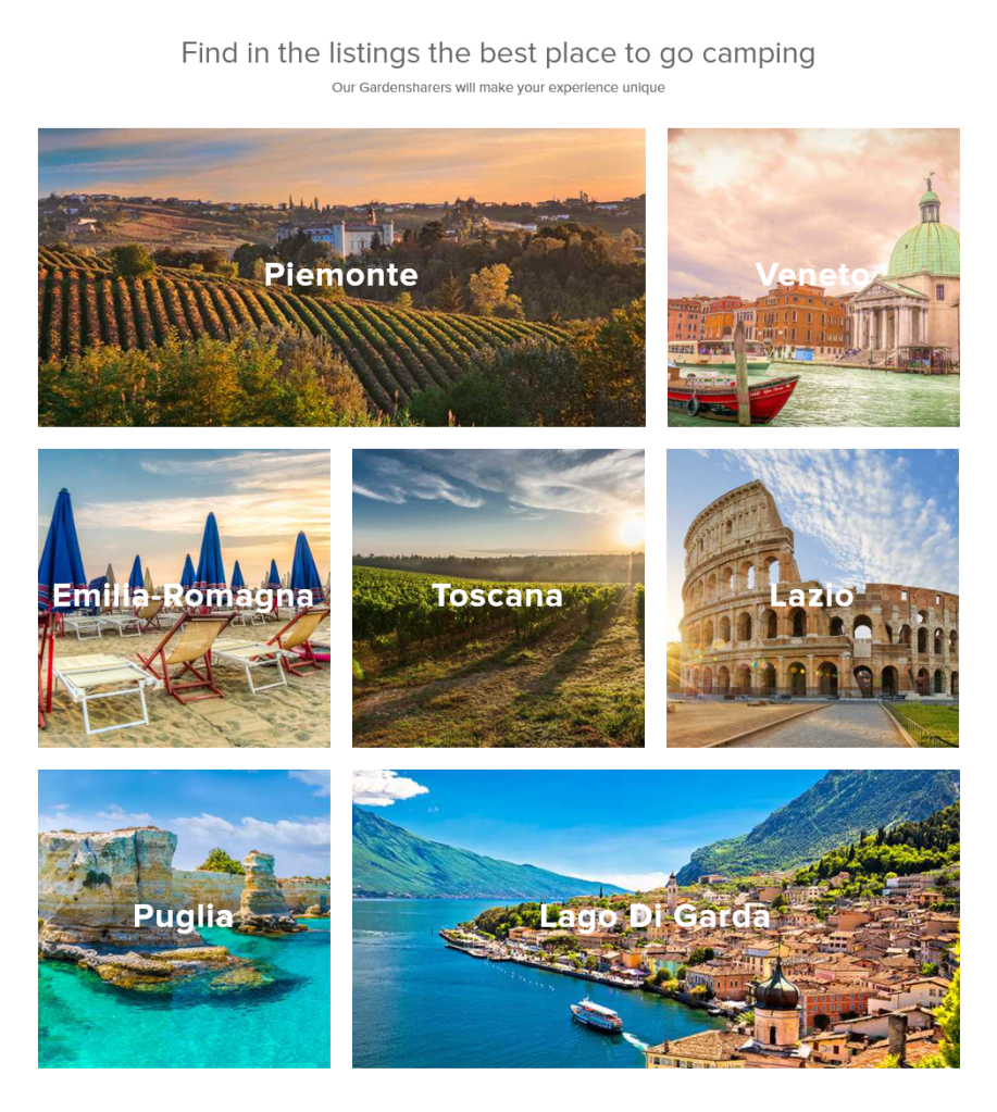 V současnosti již nabízí více jak 10.000 míst v celé Itálii, úvodní nabídka je rozčleněna dle jednotlivých částí – Peimonte, Veneto, Emilia-Romagna, Toscana, Lazio, Puglia a Lago Di Garda. Zdaleka tedy nepokryvá celou Itálii, ale turisticka zajímavá či atraktivní místa bezpochyby ano.