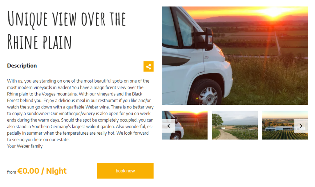 Služba opět orientované především na Německo, v nabídce jsou louky u lesů i místa na stání na farmách a u vinařů. Lze najít místa u vody i v kopečcích.