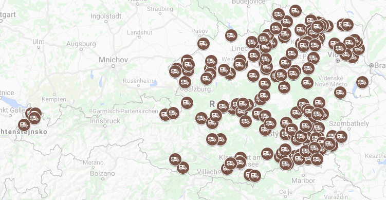 K dispozici je i mobilní aplikace – a jak si lze všimnout na mapce, k dispozici jsou trochu překvapivě i místa v Tyrolsku. Sice jen několik, alej jsou