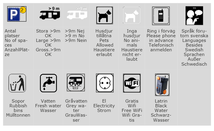 kalendářní rok. Několik stovek míst v Dánsku – cca 300 míst s kapacitou cca 750 parkovacích míst. Nelze očekávat žádné služby, ale Dánsko je země turisticky rozvinutá a tak mnoho hostitelů nabízí služby, jako je elektřina, voda, toaleta a sprcha, obvykle za menší poplatek. Cca 90 míst je vybaveno i sanitárním vybavením. Mimo průvodce je k dispozici i aplikace pro Android a Apple, lze se přihlásit i k odběru newslettru, popřípadě se na poslední novinky podívat.