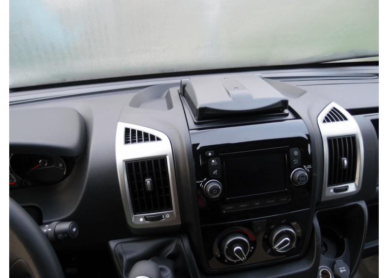 Přístrojová deska Ducato a spol není zrovna ideálně vyřešena. Rádio je poměrně daleko od řidiče, nízko a není k místu řidiče nijak natočeno. .To vše stěžuje pohodlné ovládání přístroje i čtení údajů z displeje. Do jisté míry některé nedostatky řeší dálkové ovládání na volantu, ale to nemá každý vůz a dodatečné vybavení je složité – více na toto téma v kapitole Dálková ovládání.