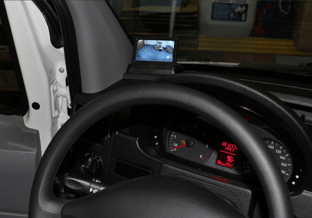 Je možné použít samostatný monitor, ten se umísťuje buď vlevo k sloupku u řidiče. Druhou možností je umístnění napravo od řidiče, směrem k držáku dokumentu. Toto místo bývá ale obsazení mobilem či samostatnou navigac, navíc je zde plocha pro uchycení docela malá, takže se někdy monitor chytá na již zmíněný výklopný držák dokumentů. Pokud ale dáváte přednost čistším liniím, nabízí se hned dvě řešení: