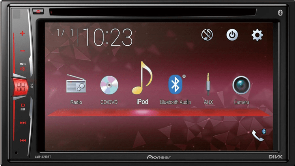 Pioneer – tohle řešení mám já, Pioneer MVH-A210BT za cca 4.300 Kč. Je to takové asi nejlevnější slušnější rádio, tlačítka jsou mechanická. Funkce mute je implementována špatně, jeden kamerový vstup, jeden USB vstup, barva tlačítek je měnitelná. Za ty peníze to není vyloženě spatné rádio. Tlačítka mají mechanickou odezvu, rádio hraje v kabině Jumperu docela obstojně.