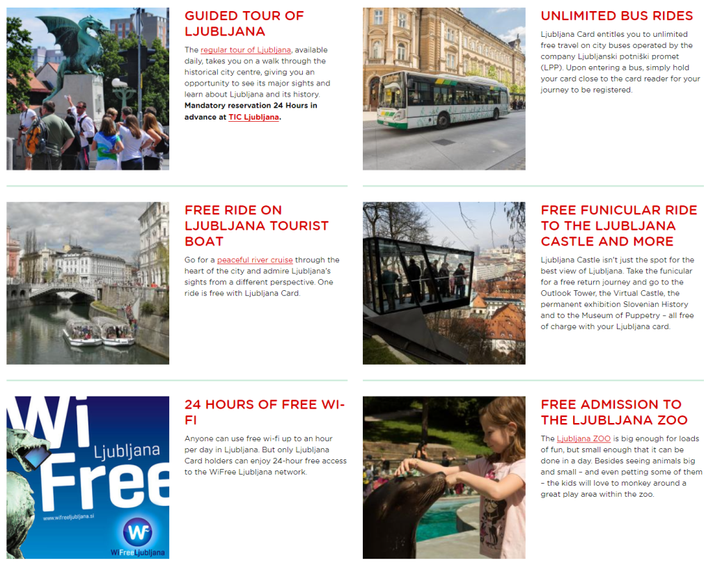 Karta není v současnosti dostupná kvuli C19 – situace se pravděpodobně změní v létě. V ceně jsou takové atrakce, jak lanovka na hrad, volná plavba výletní lodí, vstupenka do Zoo, dostupná wifi a dokonce i celodenní lístek od termálních lázní Snovik. Nabídka je samozřejmě doplněna o muzea, samozřejmostí je doprava po městě (autobusová, LPP).
