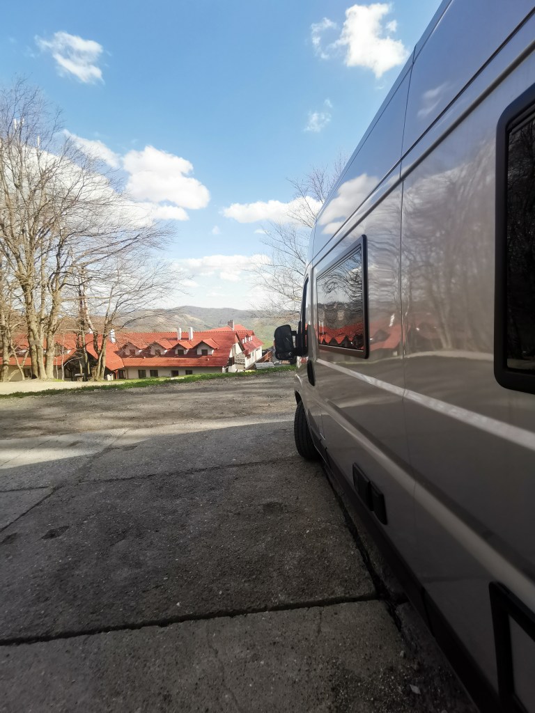 Kraj je to pěkný, kopcovitý a rozhodně nezklamal. Míst na stání obytných vozů nabízí dostatek, v údolí je pak i kemp s bazénem, ale zatím není otevřeny.