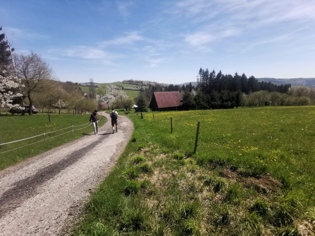Ráno jsme pak vyrazili na výlet – naučnou stezkou Okolo Hrozenka až do Starého Hrozenkova. Po cestě je možné se osvěžit i minerální vodou ze studánky. Cesta obec Vyškovec pěkně obkružuje, takže nabízí výhledy do okolí a údolí. Občas je vedle cesty stavení, najde se i útulna či kaplička.