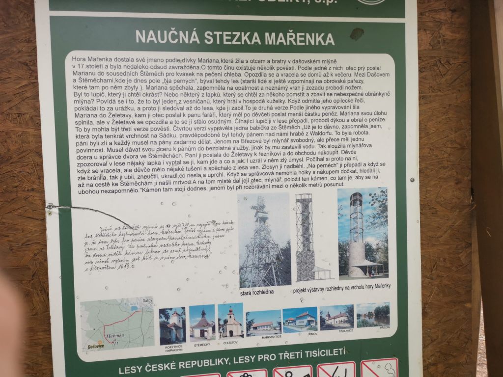 Název Mařenka pochází z pověstí, o dívce jménem Mařenka, kterou zde zabili na konci 17.století. Samotný kopec je pak nejvyšším bodem Třebíčska a kousek od rozhledny je umístněn i trigonometrický bod. U samotné rozhledny stojí za přečtení cedule, jsou zde vypsány i náklady na její stavbu a kdo ji financoval. Taková rozhledna je poměrně drahá věc v ceně několika milionů. Ale výhled do kraje je z ní pěkný, i když celkový dojem trochu kazí rozsáhlé vykácené plochy lesa kolem