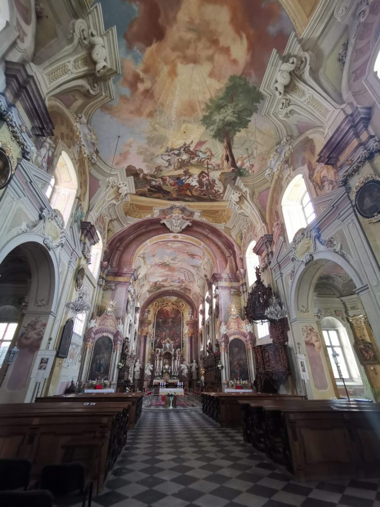My podnikli výšlap na Kalvárii, odkud je výhled na celé městečko. Cesta má cca 3.5km a zabere tam a zpět cca hodinu a půl. Po cestě jde navštívit i malé zoo, jehož část je viditelná zvenku. A než jsme se vrátili, tak přenosové vozy už byly pryč.
