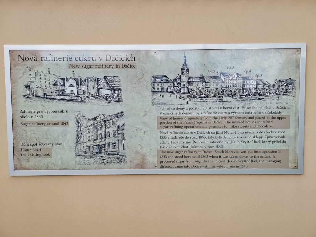 Místo, kde vznikl kostkový cukr. Však si to tady také připomínají – i když připomínka této události mne trochu zklamala. Vypadá to tak nějak obyčejně a zasazeno do blízkosti silnice, zkrátka to nějak nevyniká. Stěna s historií města není moc výrazná, ale účel plní. Dojem zachraňuje kostel sv.Vavřince s vyhlídkovou věží a pak samozřejmě zámek a park. Ten je velmi příjemným místem na procházku. Zámek nabízí prohlídku, další zdejší atrakcí je letecké muzeum i již zmíněná vyhlídková věž.