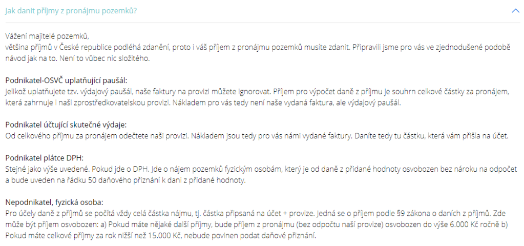 Jak danit příjmy z pronájmu pozemků?