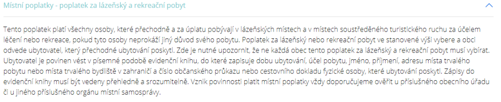 Místní poplatky -lázeňský, rekreační a z ubytovací kapacity