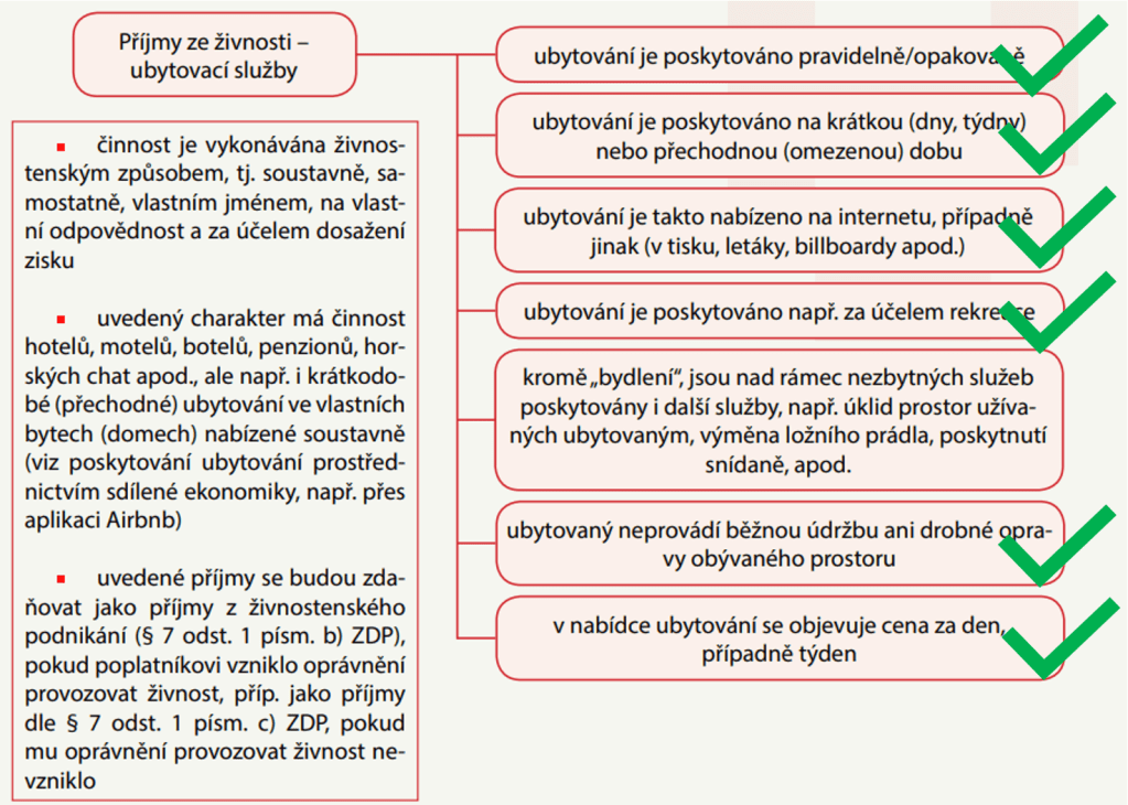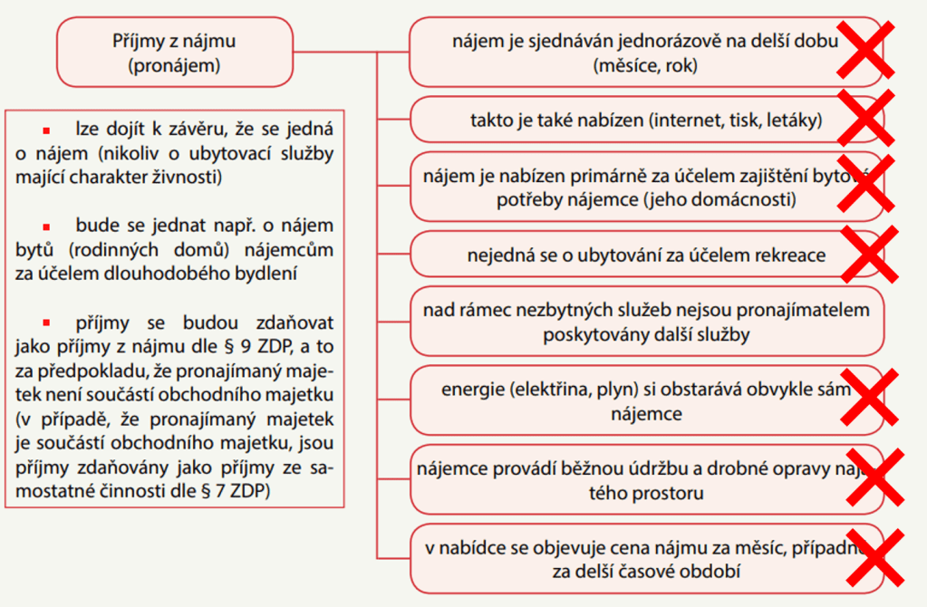 - Ubytování jako samostatná činnost nebo nájem nemovité věci