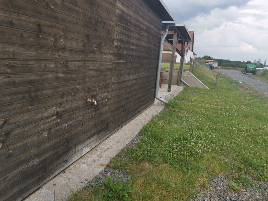Dobré zpráva je zde pro návštěvníky s obytným autem nebo přívěsem (a vlastně i ze stanem). V bezprostřední blízkosti restaurace je mini kemp vybavený téměř vším potřebným. To jest vodou, záchodem, sprchami, přípojkami na elektřinu, krytou provizorní kuchyňkou a posezením. Kempování na trávě, hlavní cesta je ale vysypána štěrkem. K úplné spokojenosti chybí snad jen lepší výlevka, hodila by se hadice s vodou na oplach kazety. Výlevka spíše svým provedením odrazuje, navíc její poloha v blízkosti vchodu do sprch není zrovna nejšťastnějším řešením.