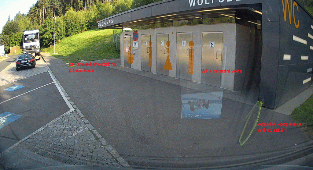 Stání u lanovky je bezproblémové – jen rovné místo najdete spíše na asfaltové ploše hned u lanovky. Ja tam nechtěl překážet a tak jsem si našel místo na zpevněnm parkovišti. To je mírně zešikma, ale nakonec jsem tam auto vyrovnal. Na noc tam stáli další dvě obytky. A ráno přijeli další, ty zaparkovali na té již zmíněné asfaltovém parkovišti.