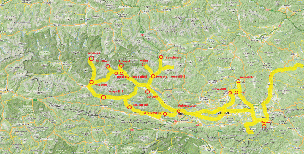 Za osm dnů jsme projeli kus Korutan a poznali i některé zapadlejší oblasti. Občas cesta vyvolala i nostalgické vzpomínky, například při jízdě po betonovém skákavém povrchu silnice B106 z Moellbrucke do Winklern kolem Obervellachu si nelze nevzpomenout na naší slavnou D1. Rozbitější L35 pak zase připomněla, že ani v Rakousku není vše dokonalé. Zejména v zapadlejších, turisty ne tolik vyhledávaných oblastech. Ale to jsou jen takové drobnosti, Korutany toho nabízí neskutečně mnoho a tady je přehled míst, která jsme navštívili. Na konci je pak i jejich stručný přehled s odkazy na další informace na jejich webových stránkách.