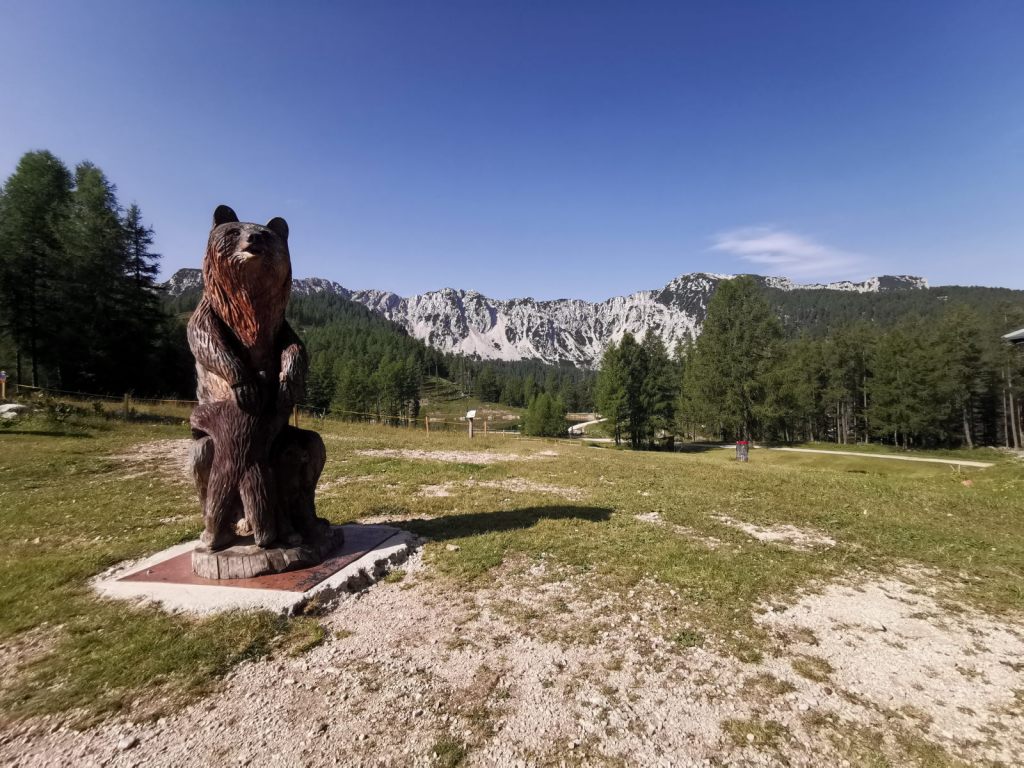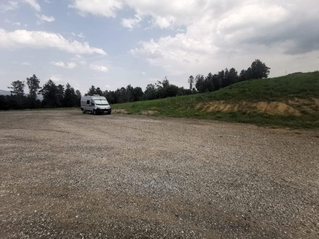 Toto v zimě lyžařské a v létě bikerské středisko leží na hranicích se Slovinskem – vlastně jsme při výletě hranice se Slovinskem několikrát překročili. Spát jde pohodlně na hlavním parkovišti, je dostatečně rovinné a velké. Je zde zákaz kempování, ale proti spaní v obytném voze nikdo nic nenamítal. A ani ten zákaz nebude nijak striktní, na jednom konci se později večer objevila skupina Volkswagenů, kteří si rozvinuli markýzy, vytáhli stolečky a otevřeli i spací stanové nadstavby. Hluční nebyli a nikomu nevadili, parkoviště je rozlehlé a jsou zde i další plochy k parkovaní. A jako bonus si lze z kopečku nad parkovištěm užít i pěkný západ slunce.