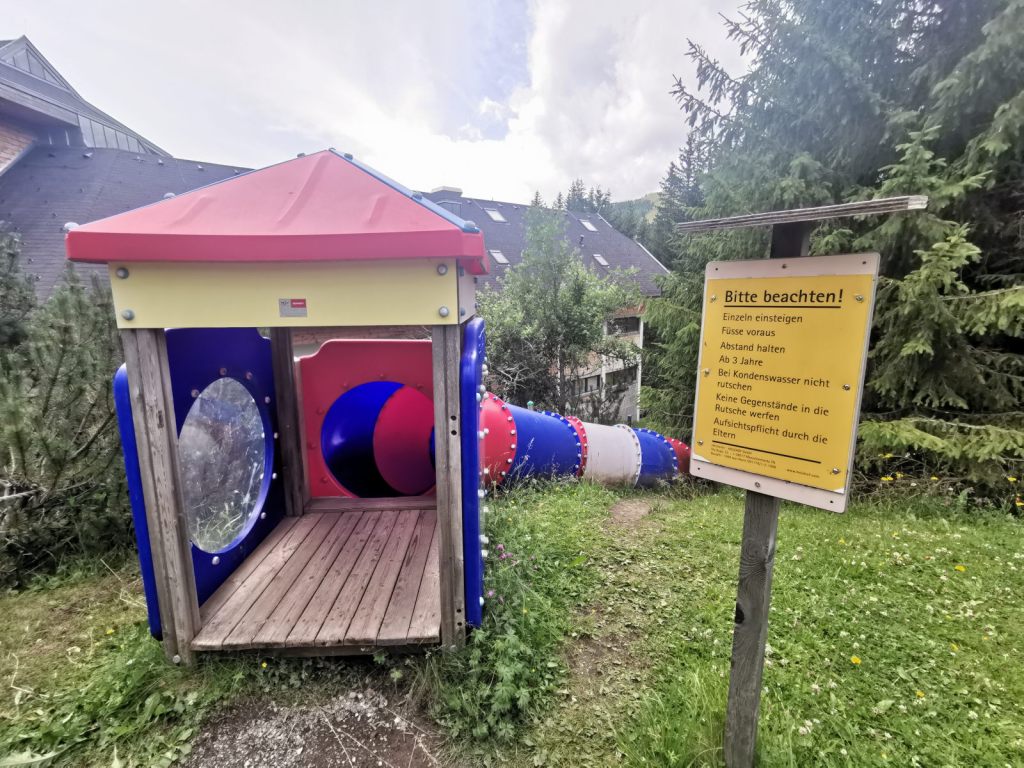 Lanovka v Innerkremsu byla zavřená, ale synek si alespoň užil bezplatného toboganu u Alm-Resort Frühauf.