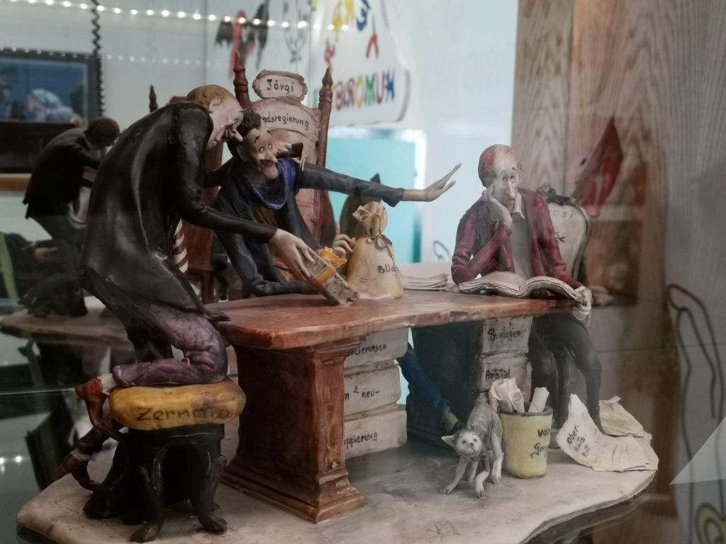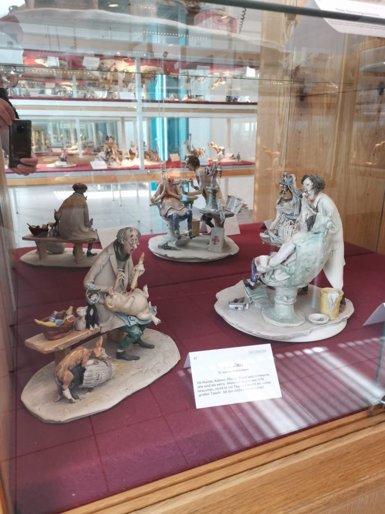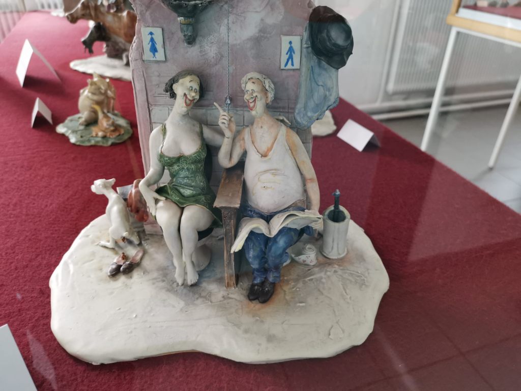 Z rána už přijelo pár aut a spolu s nimi jsme šli na první prohlídku dolu v 9:40. Čekání na prohlídku si lze zkrátit návštěvou muzea. To seznamuje jak s historii hornické činnosti v oblasti, tak obsahuje i kolekci sošek pro pobavení – velmi vtipně zachycující různé lidské činnosti, neřesti a slabosti. Čas tak ubíhá rychle a ještě se pobavíte. Pár fotek na ilustraci: