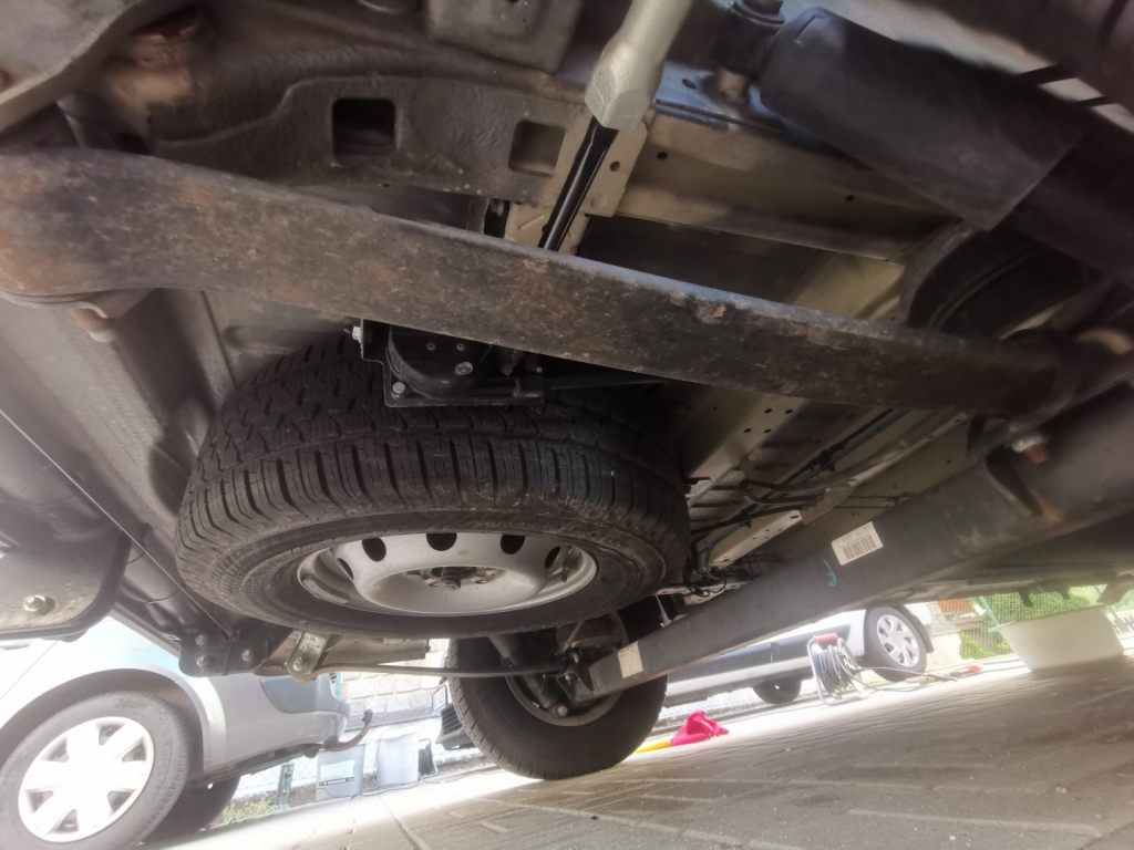 Vestavba má za zadní nápravou plnohodnotnou rezervu. Ta je upevněna pomocí spouštěcího mechanismu. Je vhodné alespoň jedenkrát ročně zkontrolovat jeho funkčnost, rezervu spustit a poté opět vytáhnout. V případě zvýšeného odporu se pokusit lanovod prostříknout mazivem či se obráti na servis o pomoc. Zaseklé spouštění kola může být v případě potřeby dost nepříjemné.