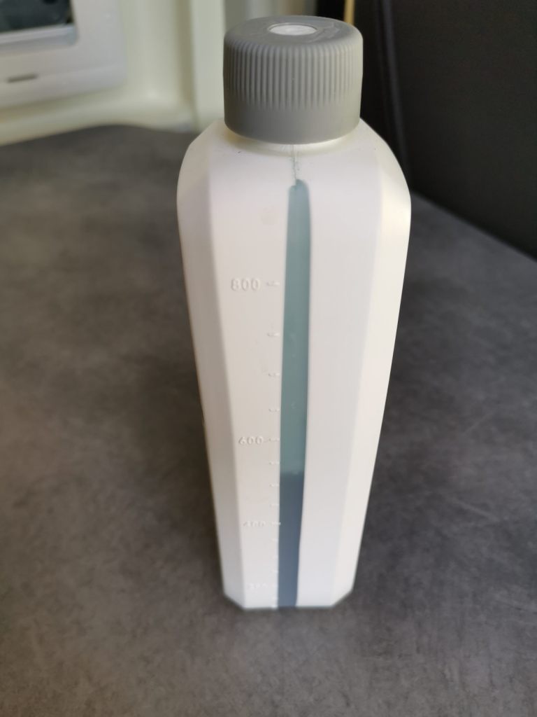 Lahev o objemu 780ml stojí cca 230 – 290 Kč, vydrží zhrua na 10 dávek. Prodává se v karavanových obchodech