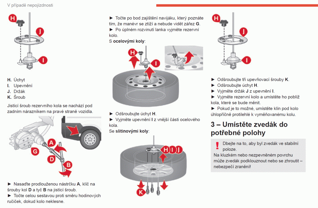Podrobný obrazový průvodce zacházení s rezervou je pak k nalezení v článku na webu CamperLife: TECHNIKA: Kontrola a použití rezervního kola – Fiat Ducato a spol.