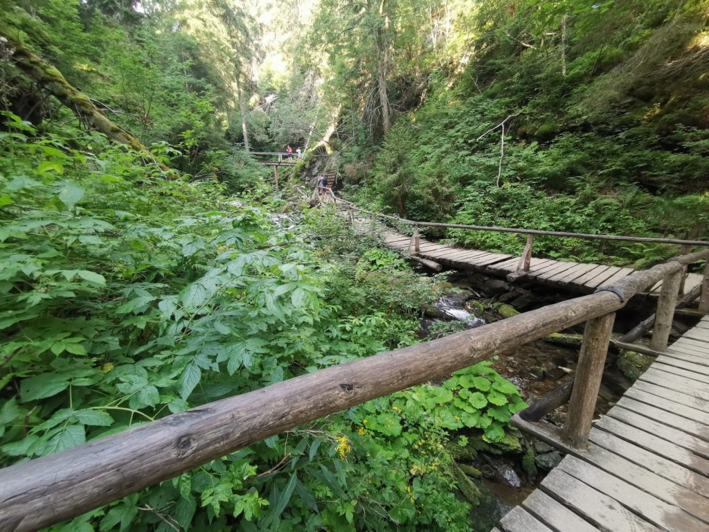 Vlastní cesta nahoru údolím je zpočátku široká, později se mění na chodník, zčásti vedený po dřevěných konstrukcích nad tokem říčky. Zážitek to je, ale čím později dorazíte, tím více lidí zde bude. Vlastně je to docela masová záležitost. Z fotek to nemusí tak vypadat, ale lidí bylo opravdu dost. Cesta je ale zábavná, s výhledy na divoké koryto řeky i nespočet vodopádů. Zajímavé jsou i mostky přes tok, i z nich se nabízí pohledy na zpěněnou vodu. Navíc je zde po většinu cesty i příjemné mikroklima. V horkých dnech k nezaplacení.