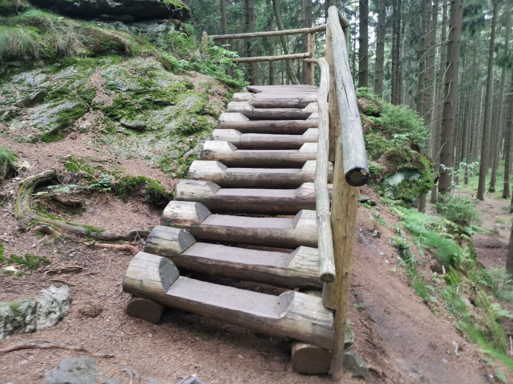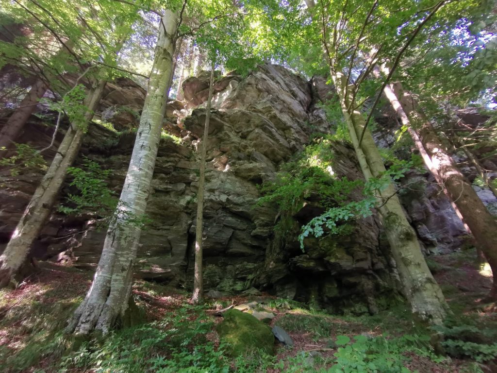 Po cestě se ale vyplatí ještě odbočit a vystoupat k Rolandovu kameni. Tenhle kus skály působí uprostřed lesa mysticky a z jeho vrcholu lze obhlédnout širé lesy kolem.